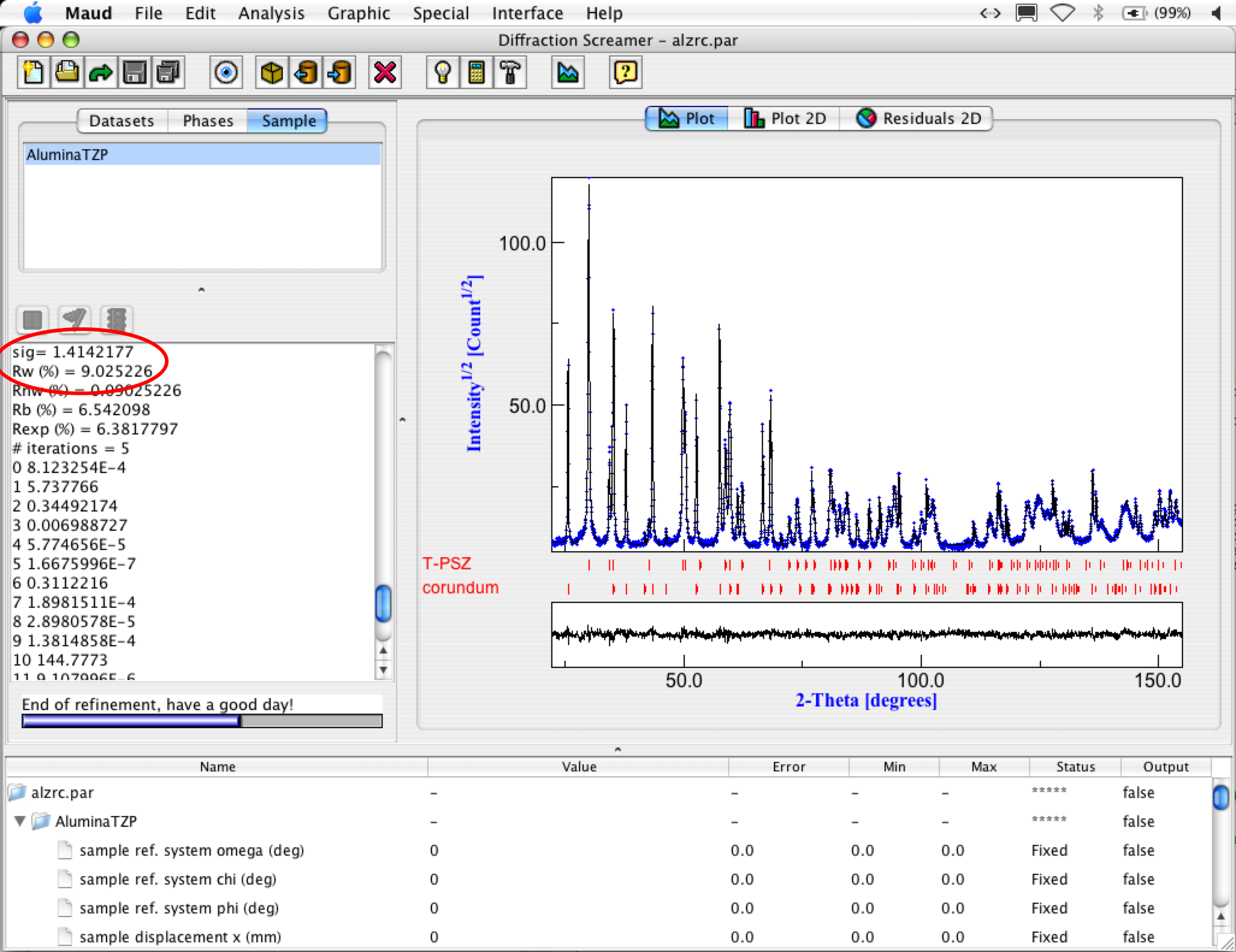most important parameters are the final Rw and sigma values. They tell