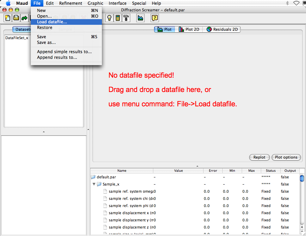 a) Locate the file in your system and drag and drop the file over the plot window of the principal Maud frame.